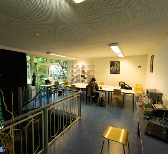 The Hermannstraße dormitory has a large club room. Here, the residents meet to study in the morning and to talk, watch TV, play table soccer or - if they can - the piano in the evening. Community is relevant. In summer, everyone uses the large inner yard for barbecuing under the old beech tree. The most relentless ones have been spotted here in winter, too.